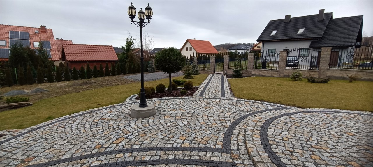 Pięknie zaaranżowany ogród z licznymi nasadzeniami, zagospodarowany i bardzo dobrze utzrymany, przedogródek ze ścieżkami wyłożonymi kostką granitową, stylową latarnią, dwie bamy wjazdowe otwierane automatycznie.