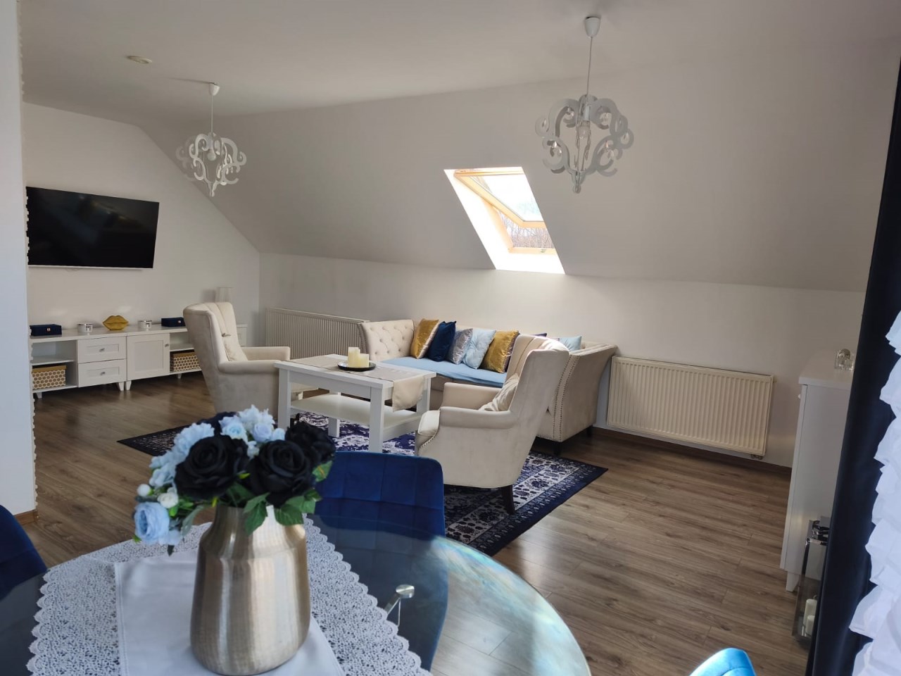 - salon z bio-kominkiem, aneksem kuchennym i wyjściem na duży balkon