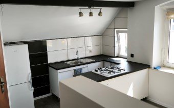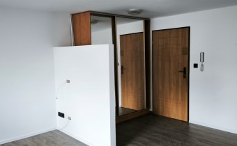- pokój z aneksem kuchennym, w którym wydzielono przedpokój z szafą pod zabudowę,