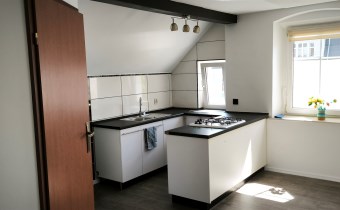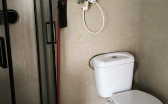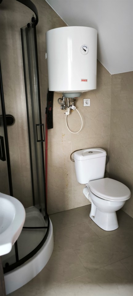- łazienka z wc wyposażona w kabinę pryszniciową oraz umywalkę.