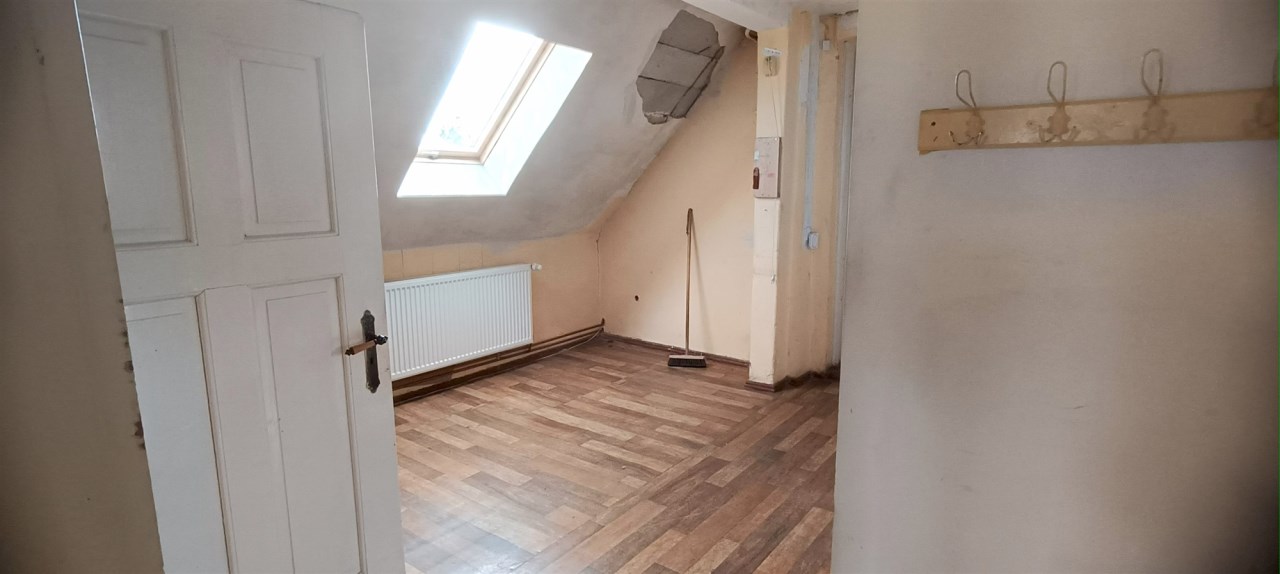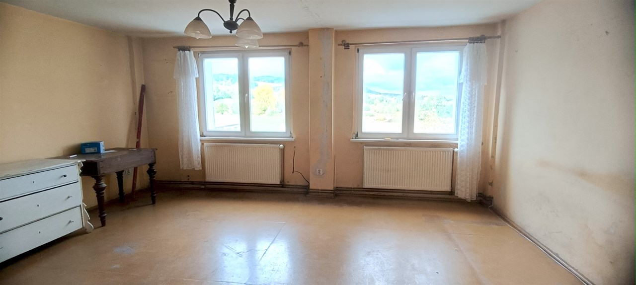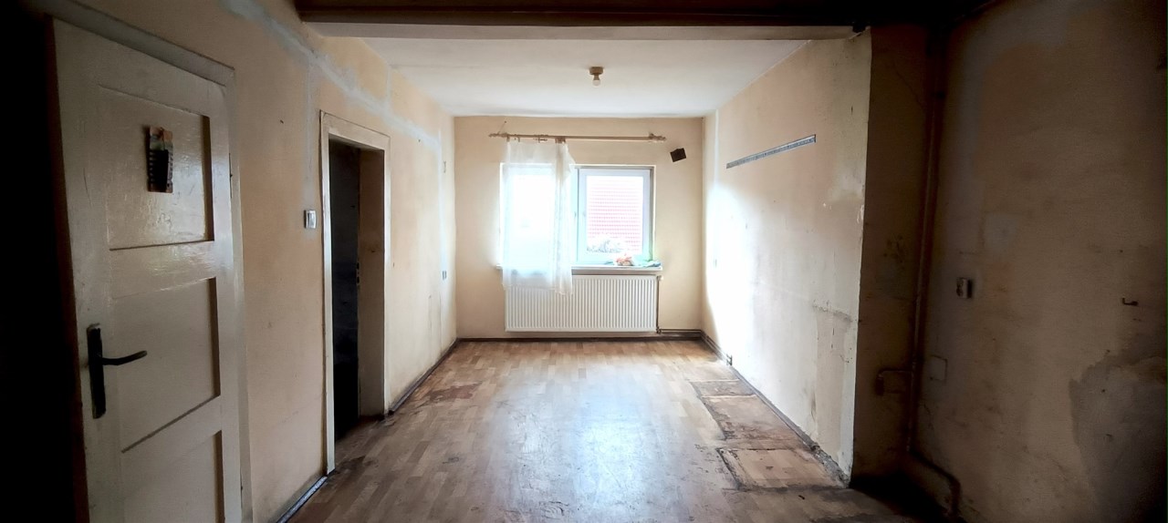 4 pokoje, kuchnia, łazienka z wc, 2 przedpokoje, 3 poddasza, spiżarka. Dwie komórki w budynku gospodarczym na zewnątrz. Właściciele dzierżawią od Gminy Pieszyce ogródek zlokalizowany tuż przy budynku - umowę dzierżawy można przepisać na nowego nabywcę mieszkania.